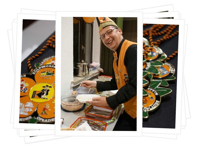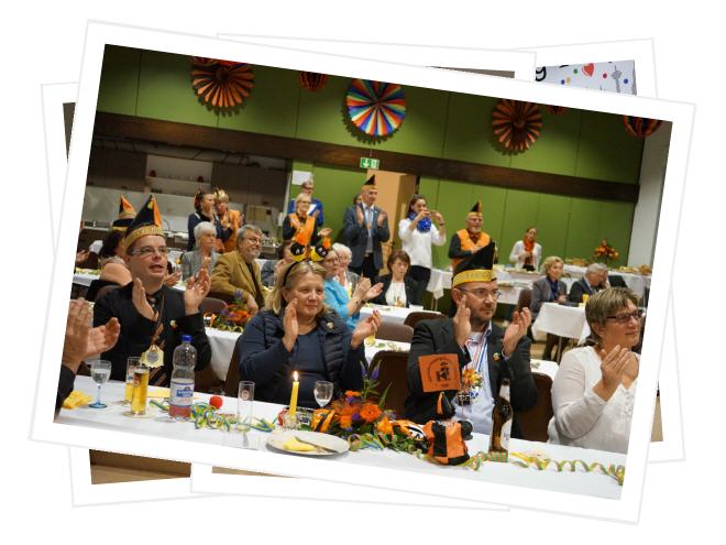 ... und zwar mit viel Spass an dr Freud, mit leckerem Essen - Danke an die "Buffet-Damen" Waltraud und Christa -, schönem Programm - Danke, Klemens -, schwungvoller Musik - Dank an Helmut Hergarten -, nie auf dem Trockenen - Dank dem Küchenteam -, und mit bester Laune. Wir haben uns gefreut über die Auftritte der Schlebuscher Pänz der KG Grün-Weiß Schlebusch und der Mädchengarde der Altstadtfunken Opladen, über Besuch von einem bestens aufgelegten Prinz Peter III. mit Gefolge und von unserem Pastur Heinz-Peter Teller als "Ne Heimwerker". Wir gratulieren den neuen Ehrensenaroren Matthias Brandes, Jörg Nöres und Reymund Hermanski, der sich - kaum in den Kreis der Ehrensenatoren aufgenommen - über den Titel als Bohnenkönig der Session 2016/17 freuen konnte.