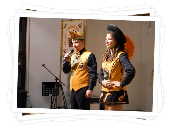 ... gab es im Pfarrsaal St. Remigius gleich mehrfachen Grund zur Freude: Mit tollen Auftritten zeigten die Mädchengarde der KG Rote Funken und das Kindertanzcorps der KG Altstadtfunken, dass uns um die Zukunft des Karnevals in unserer Stadt nicht bang zu sein braucht. Ein leckeres Buffet erfreute knurrende Mägen und das fitte Küchenteam durstige Besucher. Die Ehrensenatoren Martin Steinkühler (1x11 Jahre), Franziska Richter und Hartmut Vogt (2x11 Jahre) sowie Hans Oerding (3x11 Jahre) konnten sich über die Ehrung ihrer jecken Jubiläen freuen und Prinz Matze I. über ein sangeskräftiges und feierlustiges Publikum. Die Närrische Kolpingsfamilie freute sich über vier neue Ehrensenatoren - Christa Engelhard, Hans Hermes, Markus Rubert und Dieter Misère - und über einen neuen Bohnenkönig: Das Kaffeebohnen-Los fiel auf Ex-Prinz Heinz Haase.